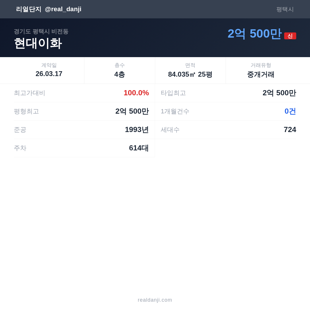 | 2026.03.17 | 84㎡ | 4층 | 2억 500만 |
