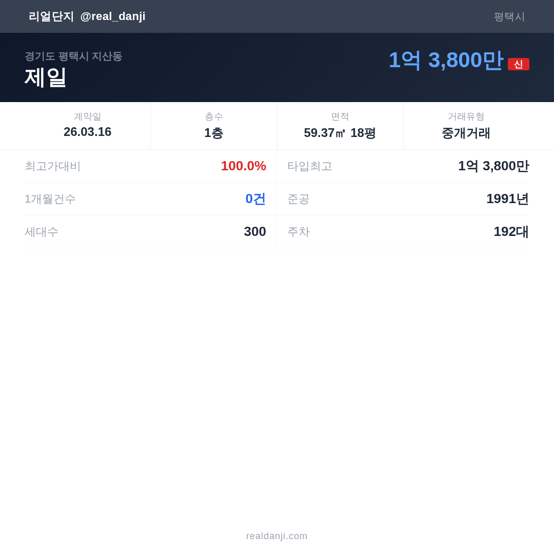 제일은(는) 1991년에 준공되었으며, 현재 35년차입니다. 총 300세대 규모입니다.