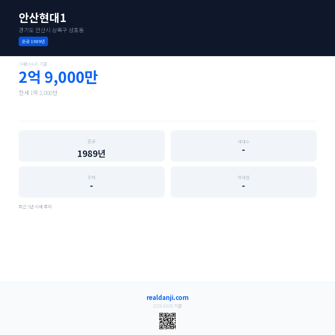 안산현대1 최근 거래가는 2억 9,000만입니다. (2026-03)