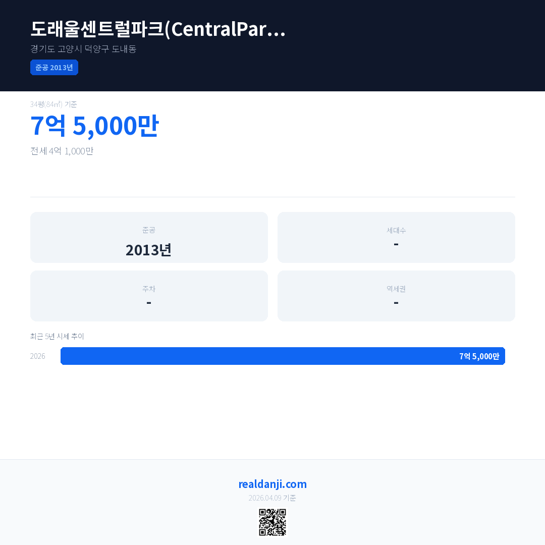 도래울센트럴파크(CentralPark) 최근 거래가는 7억 5,000만입니다. (2026-03)