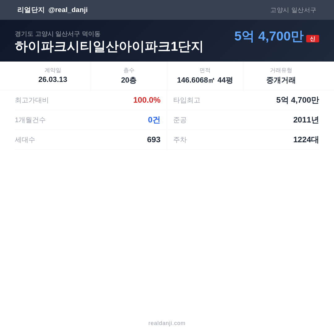 | 2026.03.13 | 147㎡ | 20층 | 5억 4,700만 |
