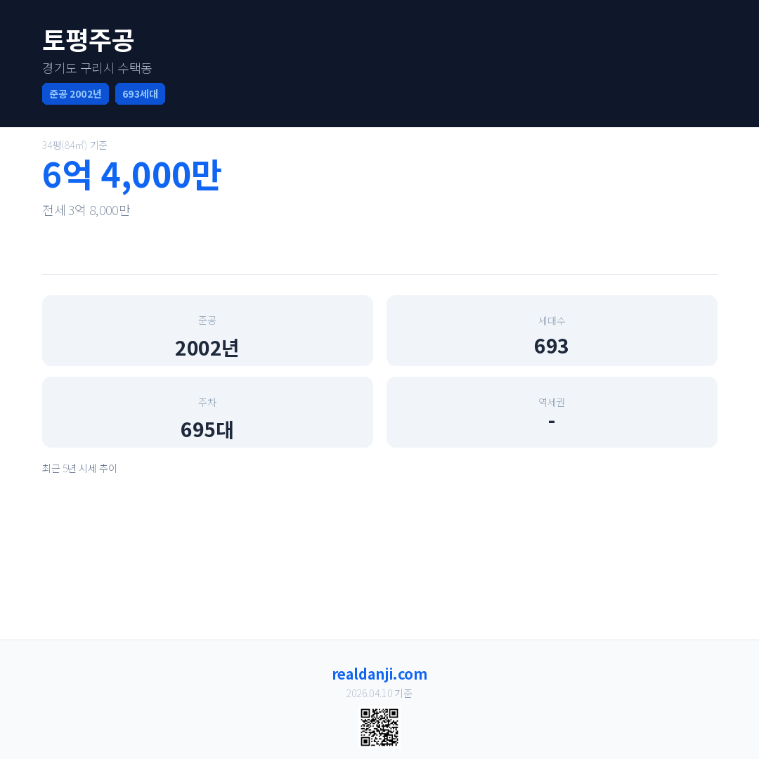 토평주공 최근 거래가는 6억 4,000만입니다. (2026-03)