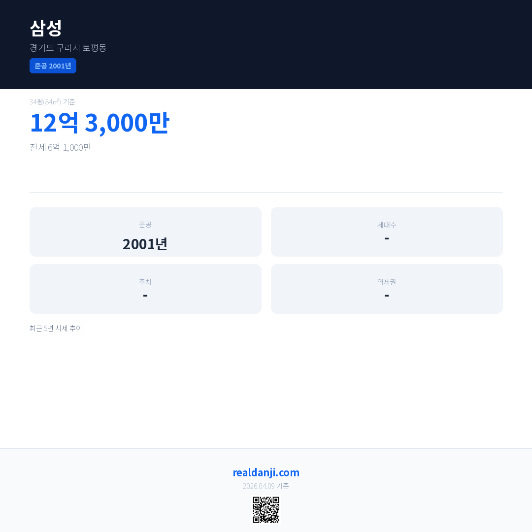 삼성 최근 거래가는 12억 3,000만입니다. (2026-03)