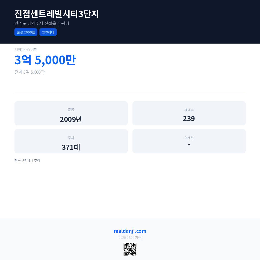 진접센트레빌시티3단지 최근 거래가는 3억 5,000만입니다. (2026-03)
