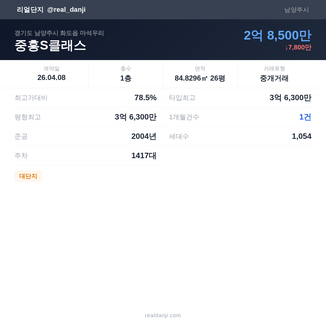 | 2026.04.08 | 85㎡ | 1층 | 2억 8,500만 |