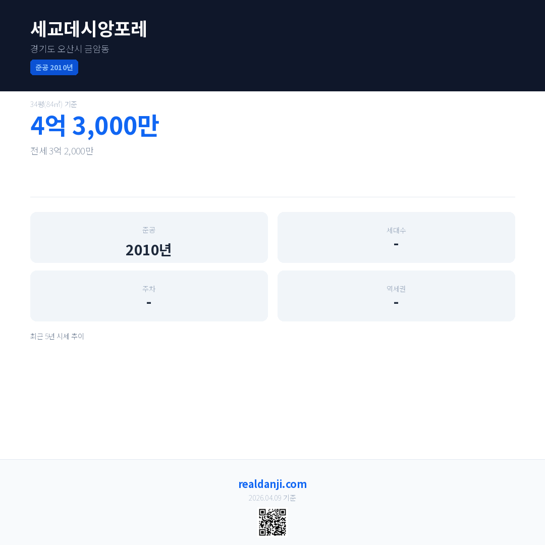 세교데시앙포레 최근 거래가는 4억 3,000만입니다. (2026-03)