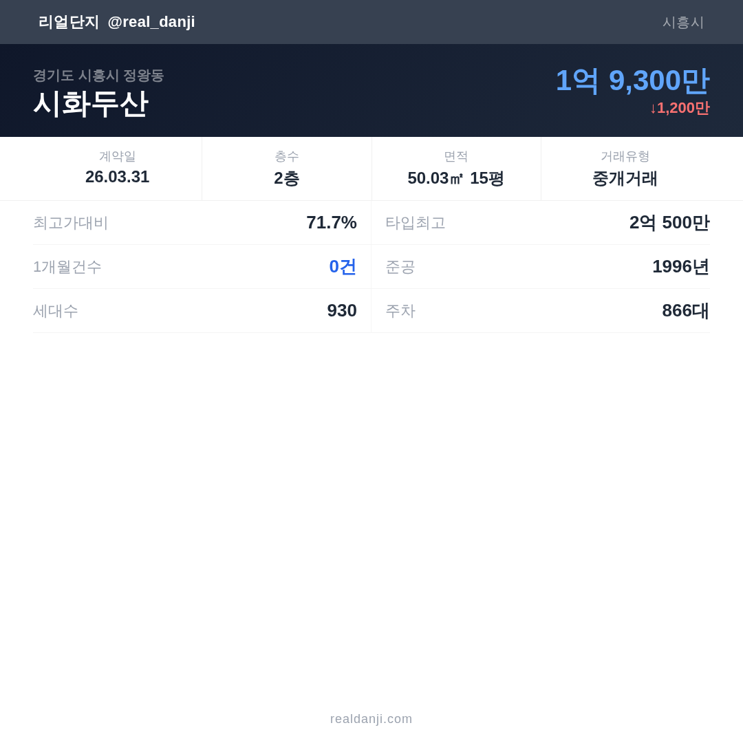 | 2026.03.31 | 50㎡ | 2층 | 1억 9,300만 |