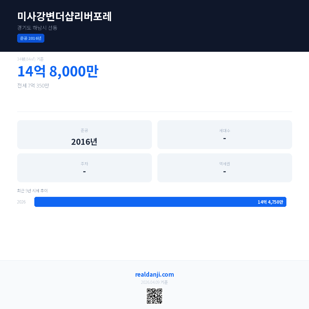 미사강변더샵리버포레 최근 거래가는 14억 8,000만입니다. (2026-03)