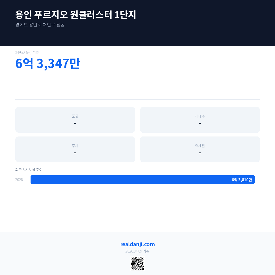 용인 푸르지오 원클러스터 1단지 최근 거래가는 6억 4,657만입니다. (2026-03)