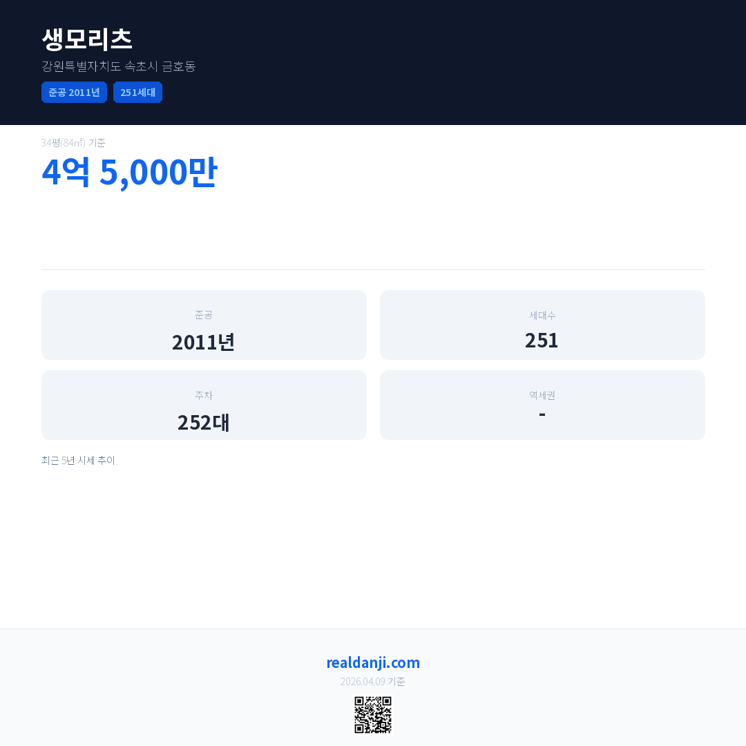생모리츠 최근 거래가는 4억 5,000만입니다. (2026-03)
