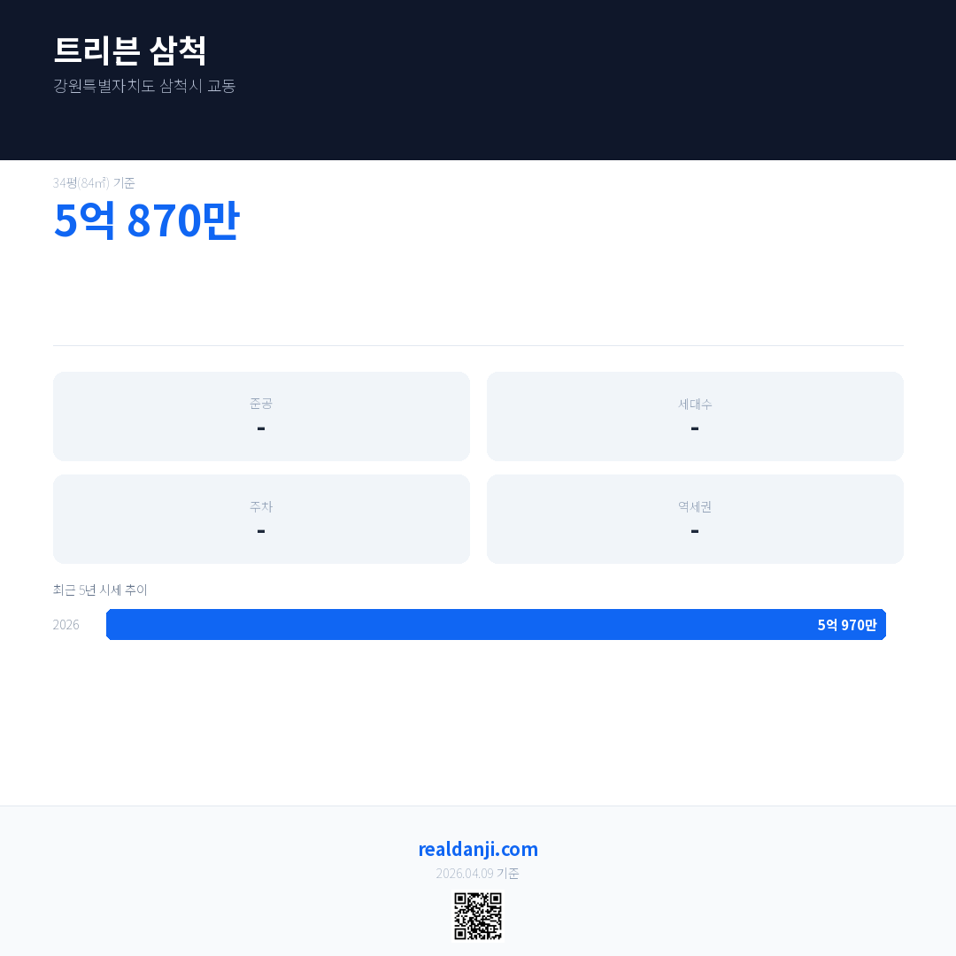 트리븐 삼척 최근 거래가는 5억 1,170만입니다. (2026-03)