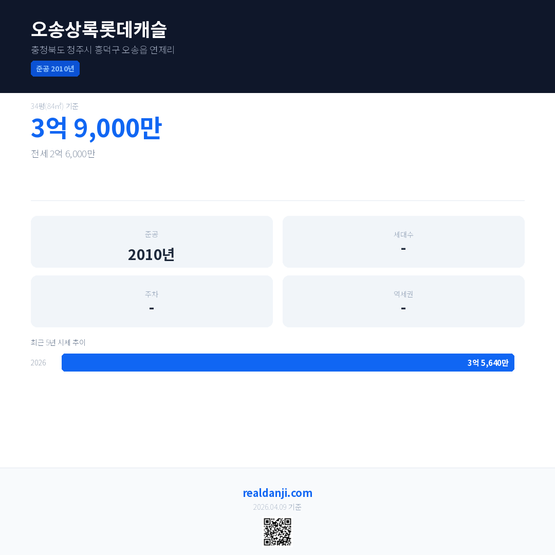 오송상록롯데캐슬 최근 거래가는 3억 9,000만입니다. (2026-03)