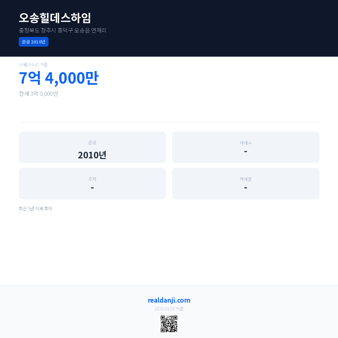 오송힐데스하임 최근 거래가는 7억 4,000만입니다. (2026-03)