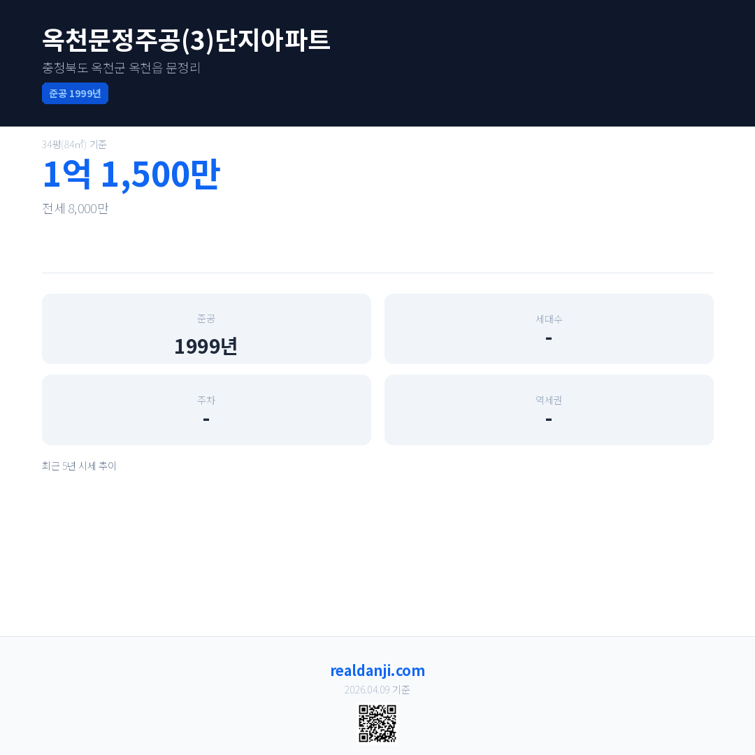 옥천문정주공(3)단지아파트 최근 거래가는 1억 1,500만입니다. (2026-03)