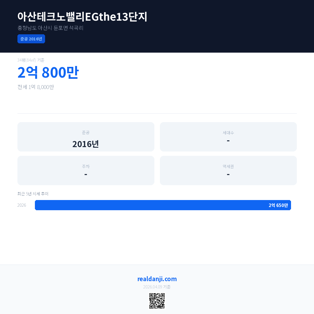 아산테크노밸리EGthe13단지 최근 거래가는 2억 900만입니다. (2026-03)