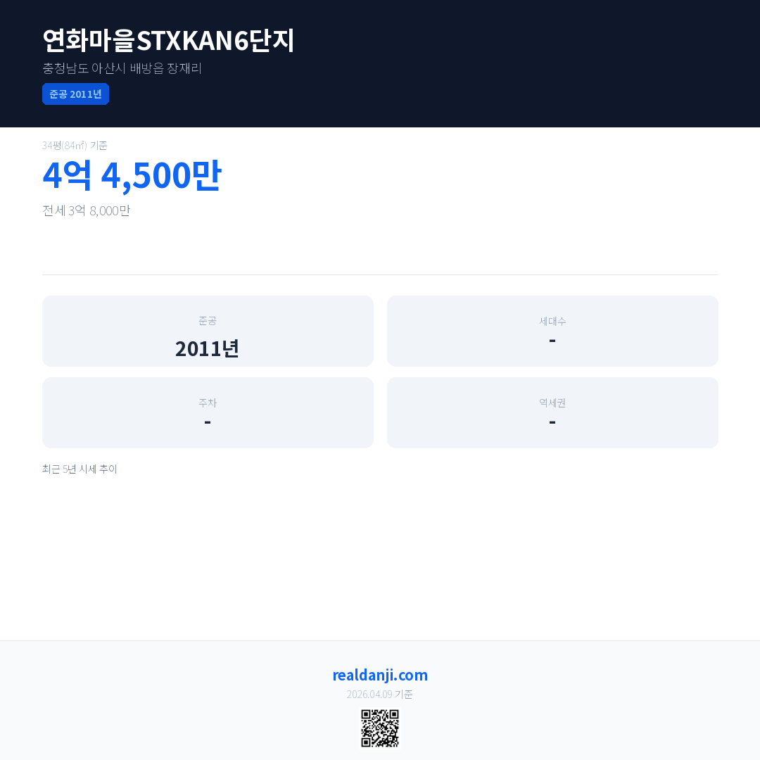 연화마을STXKAN6단지 최근 거래가는 4억 4,500만입니다. (2026-03)