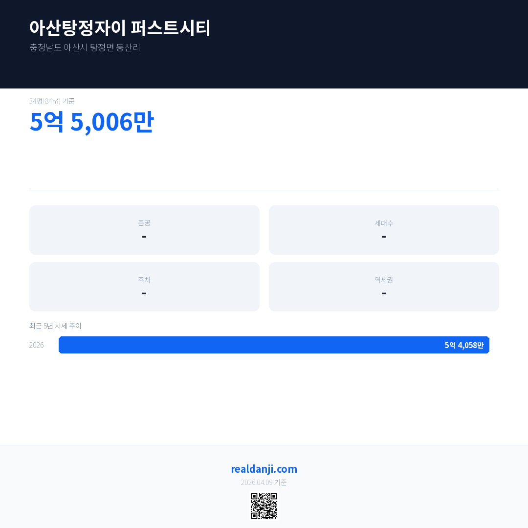 아산탕정자이 퍼스트시티 최근 거래가는 5억 5,006만입니다. (2026-03)