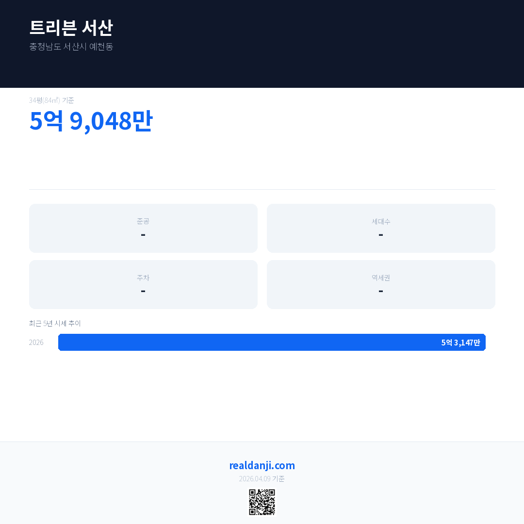 트리븐 서산 최근 거래가는 5억 9,048만입니다. (2026-03)