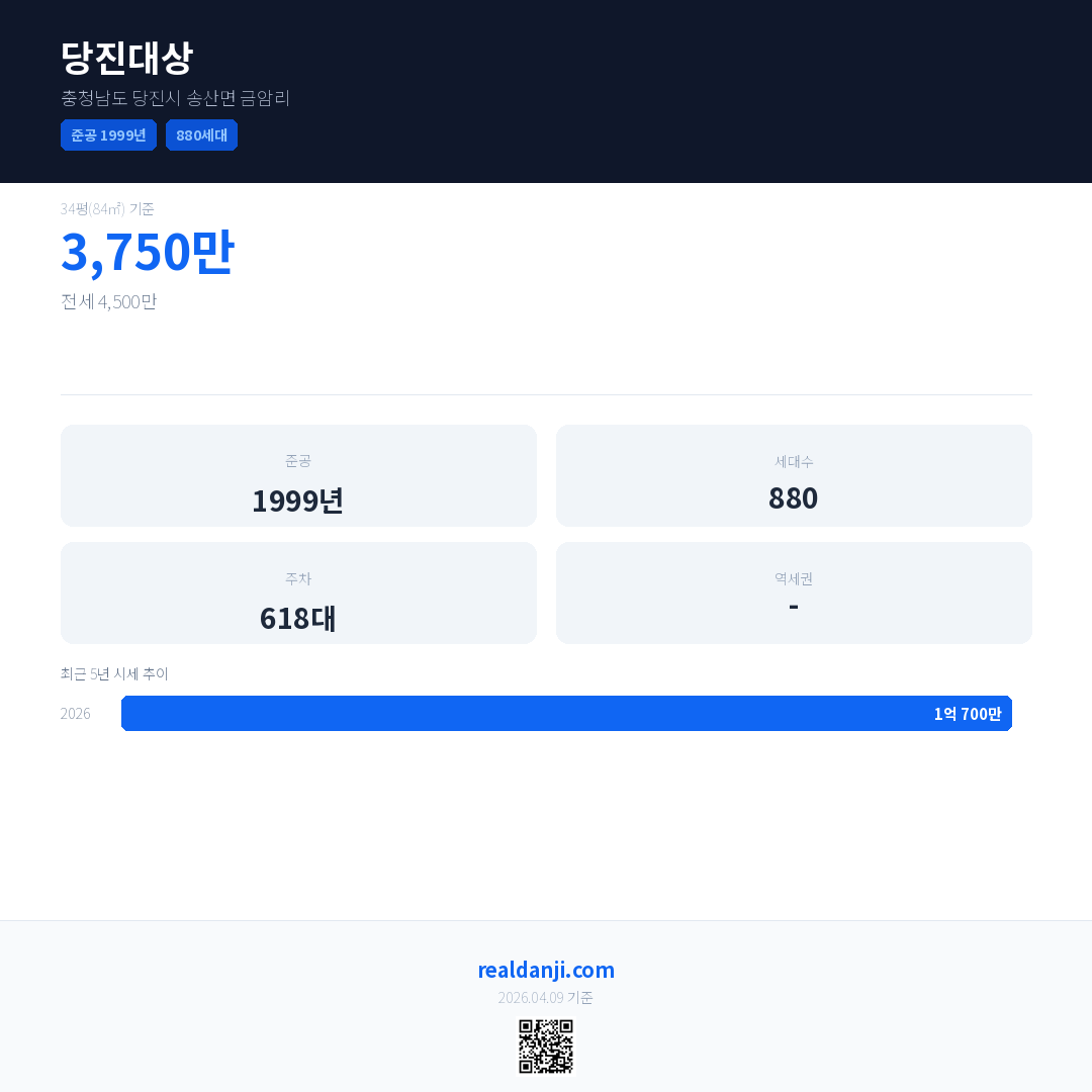 당진대상 최근 거래가는 1억 700만입니다. (2026-03)