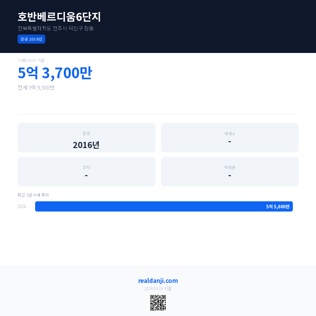 호반베르디움6단지 최근 거래가는 5억 7,500만입니다. (2026-03)