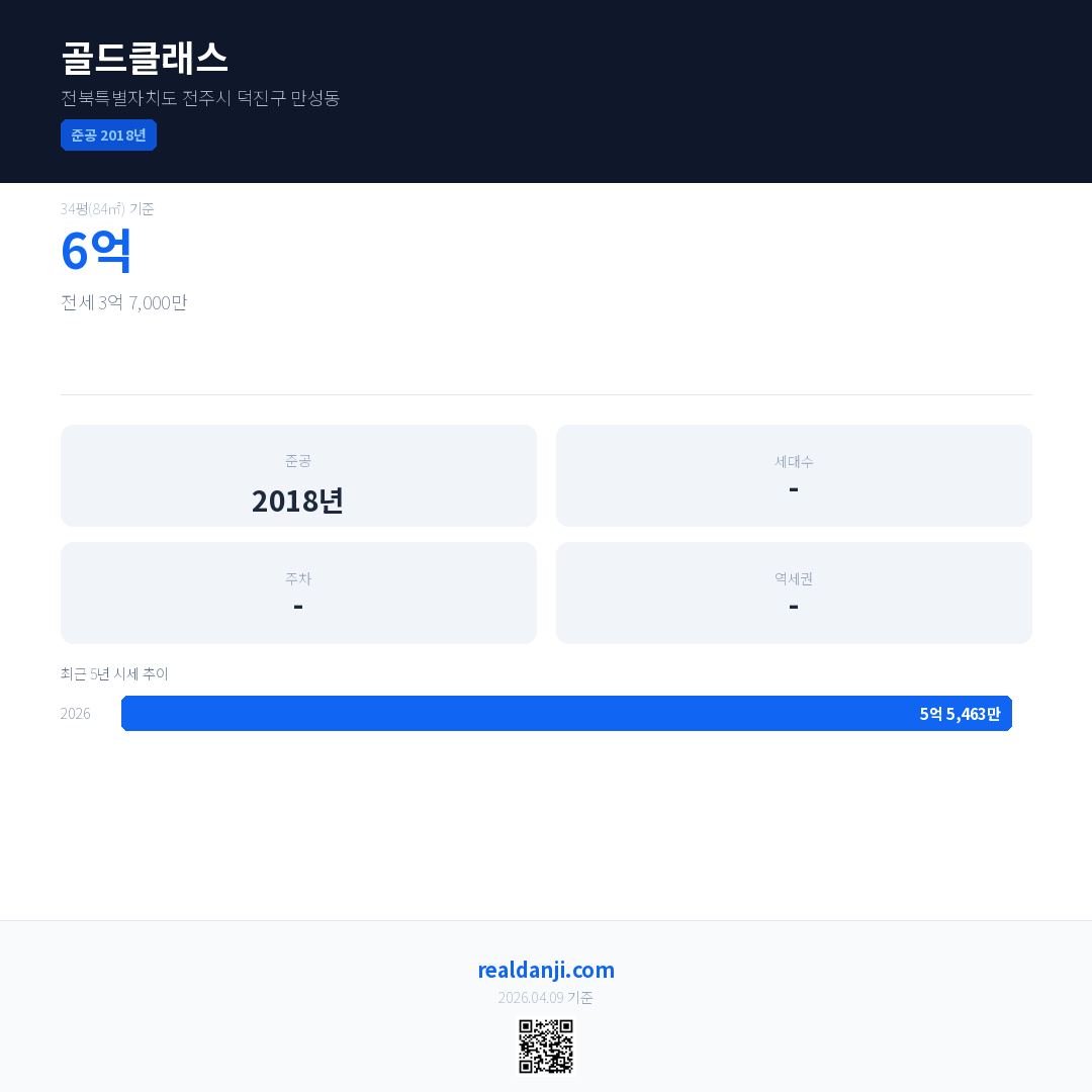골드클래스 최근 거래가는 6억입니다. (2026-03)