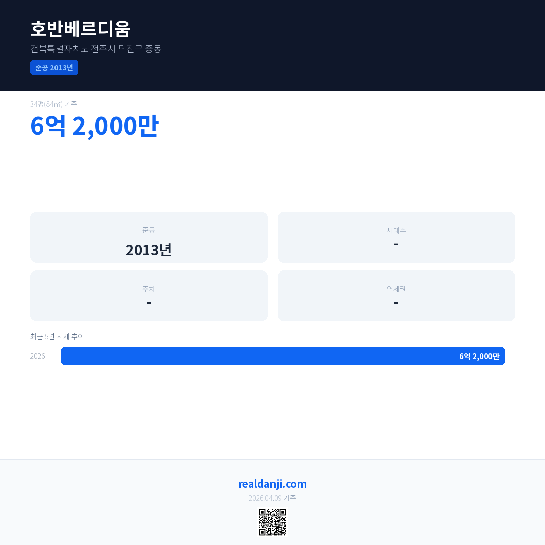 호반베르디움 최근 거래가는 6억 2,000만입니다. (2026-03)