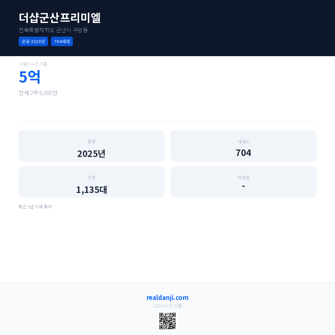 더샵군산프리미엘 최근 거래가는 5억입니다. (2026-03)