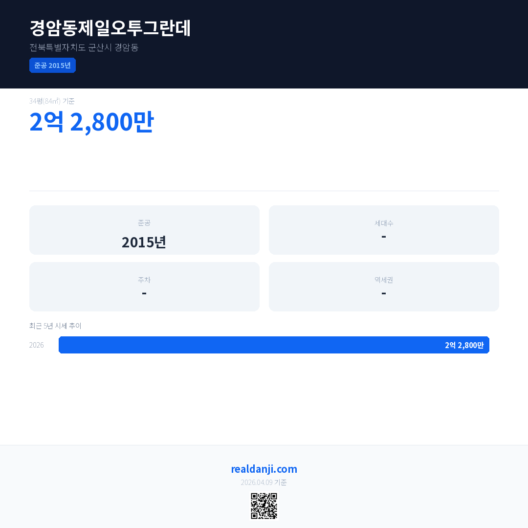 경암동제일오투그란데 최근 거래가는 2억 2,800만입니다. (2026-03)