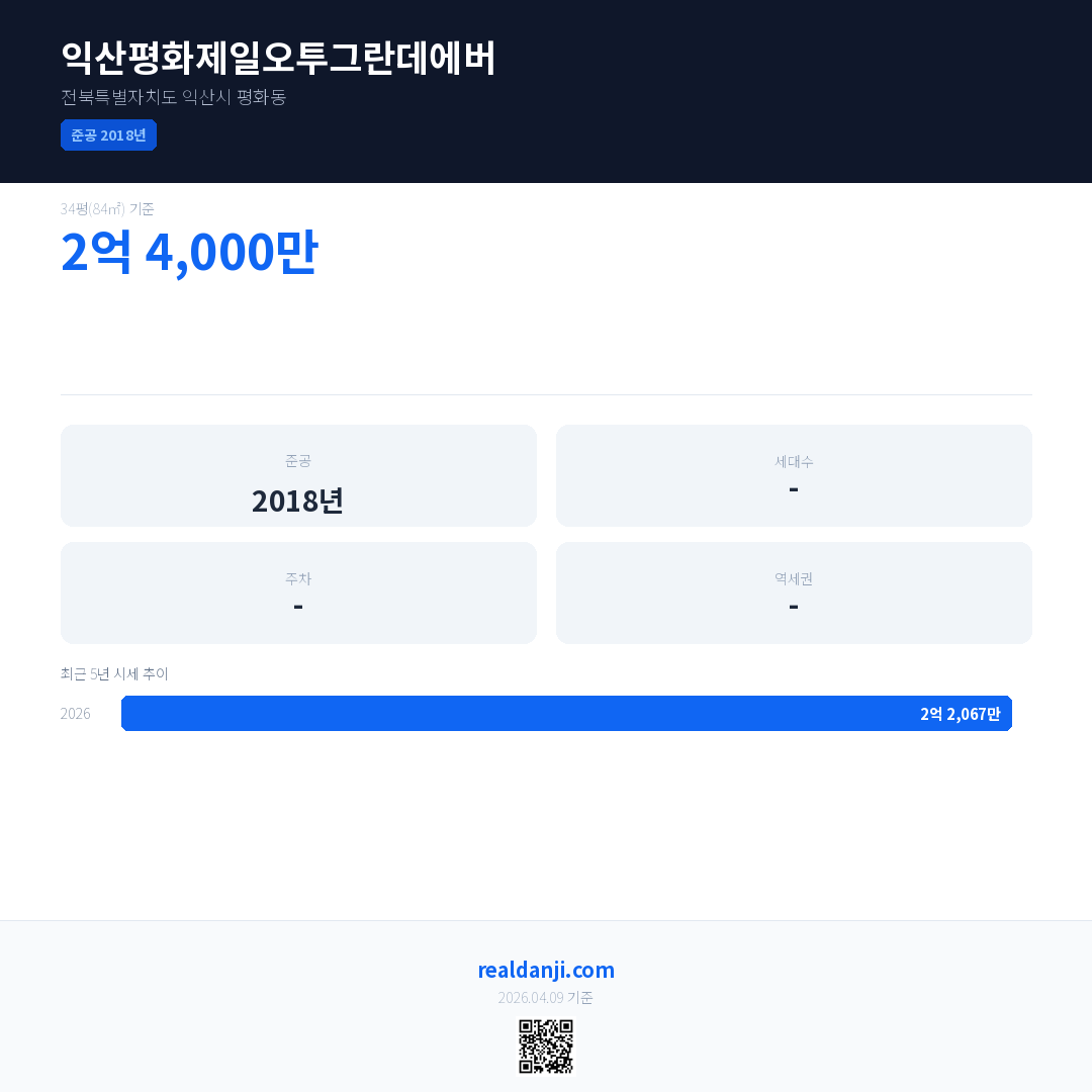 익산평화제일오투그란데에버 최근 거래가는 2억 4,000만입니다. (2026-03)