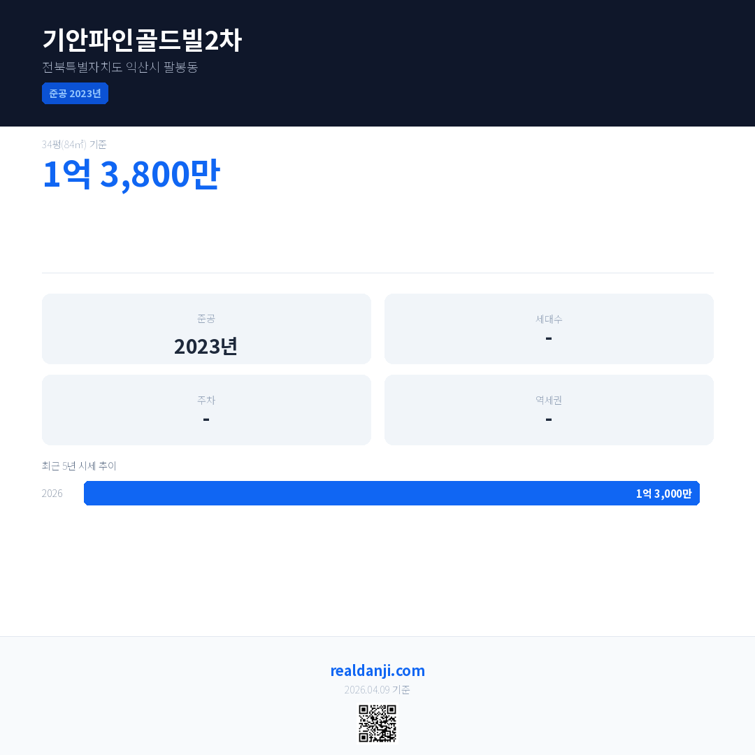 기안파인골드빌2차 최근 거래가는 1억 3,800만입니다. (2026-03)