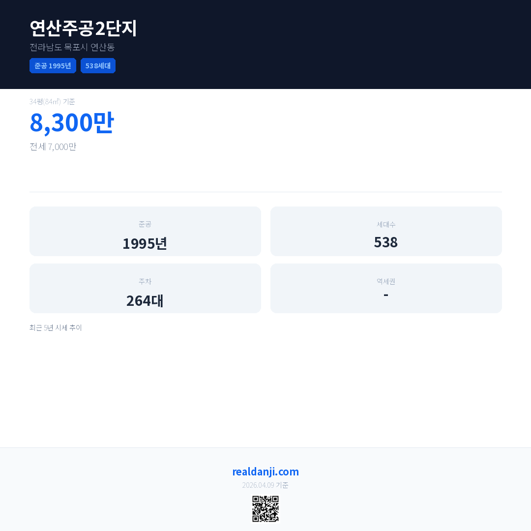 연산주공2단지 최근 거래가는 8,300만입니다. (2026-03)