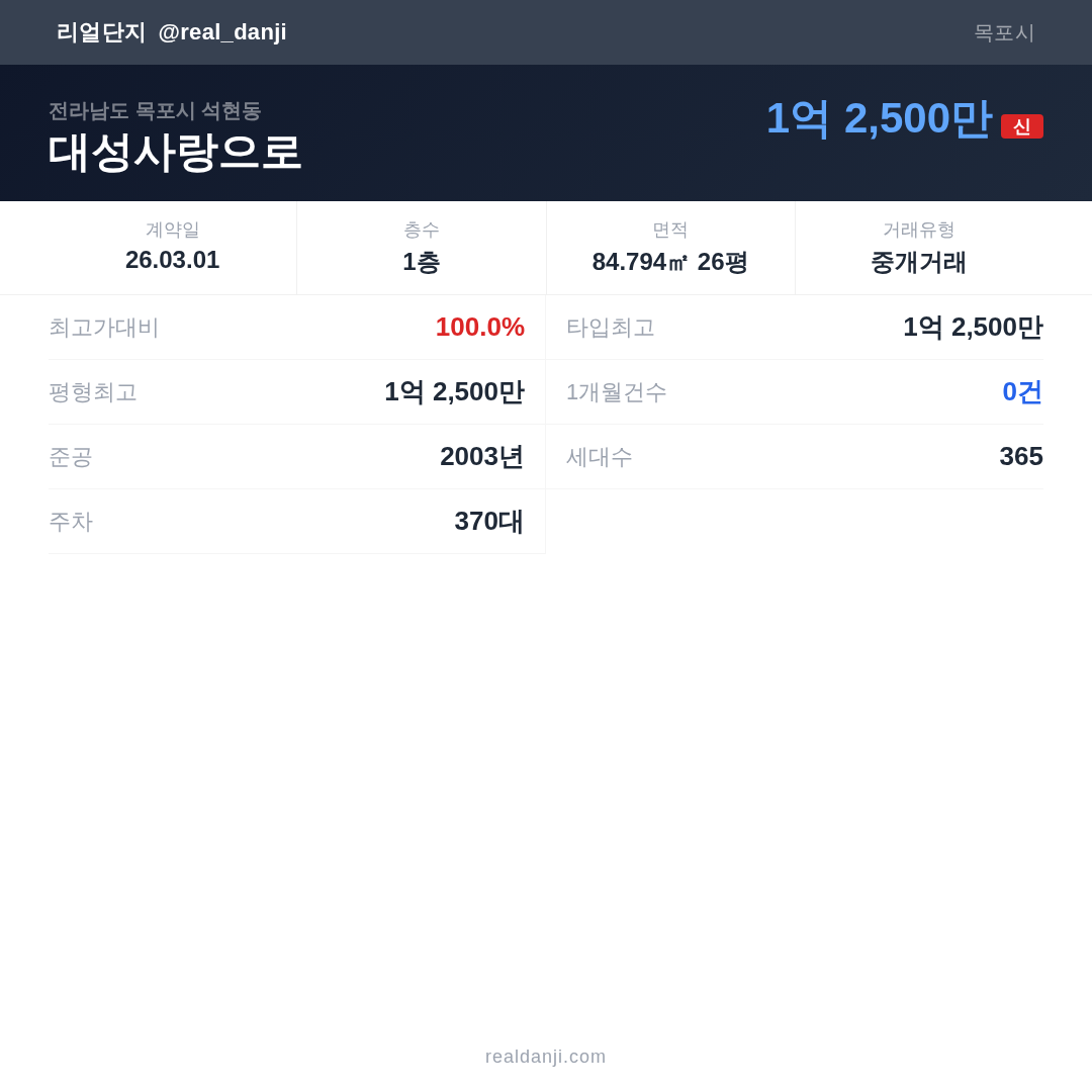 대성사랑으로 최근 거래가는 1억 2,500만입니다. (2026-03)