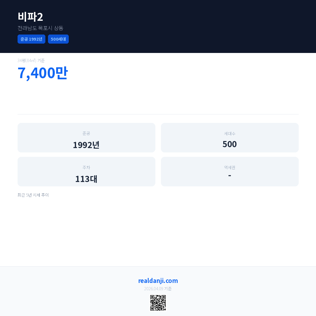 비파2 최근 거래가는 7,400만입니다. (2026-03)