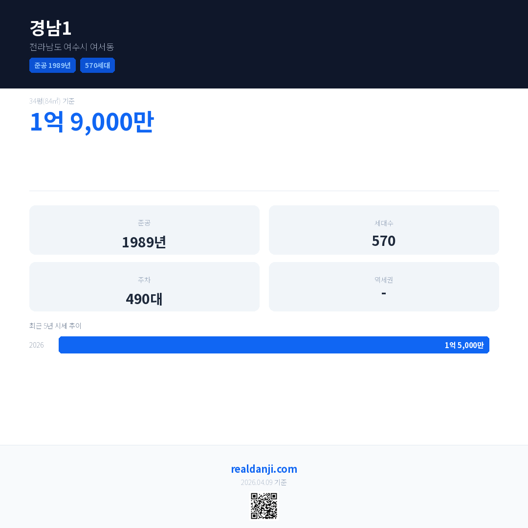 경남1 최근 거래가는 1억 9,000만입니다. (2026-03)