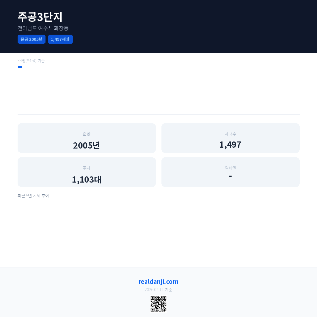 주공3단지은(는) 2005년에 준공되었으며, 현재 21년차입니다. 총 1,497세대 규모입니다.