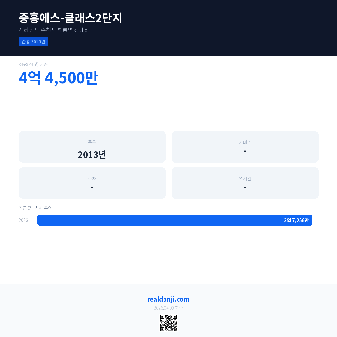 중흥에스-클래스2단지 최근 거래가는 4억 4,500만입니다. (2026-03)