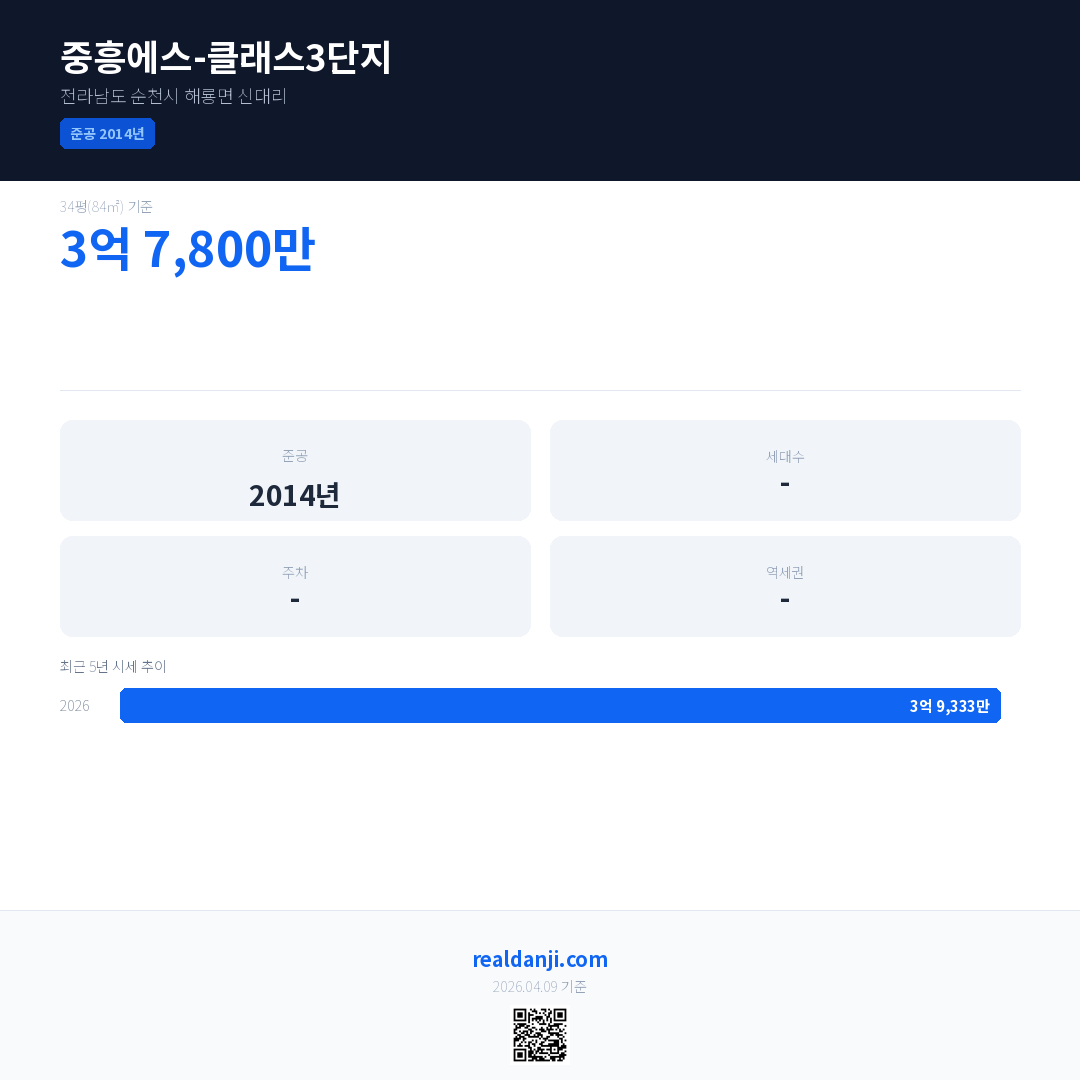 중흥에스-클래스3단지 최근 거래가는 4억 5,900만입니다. (2026-03)
