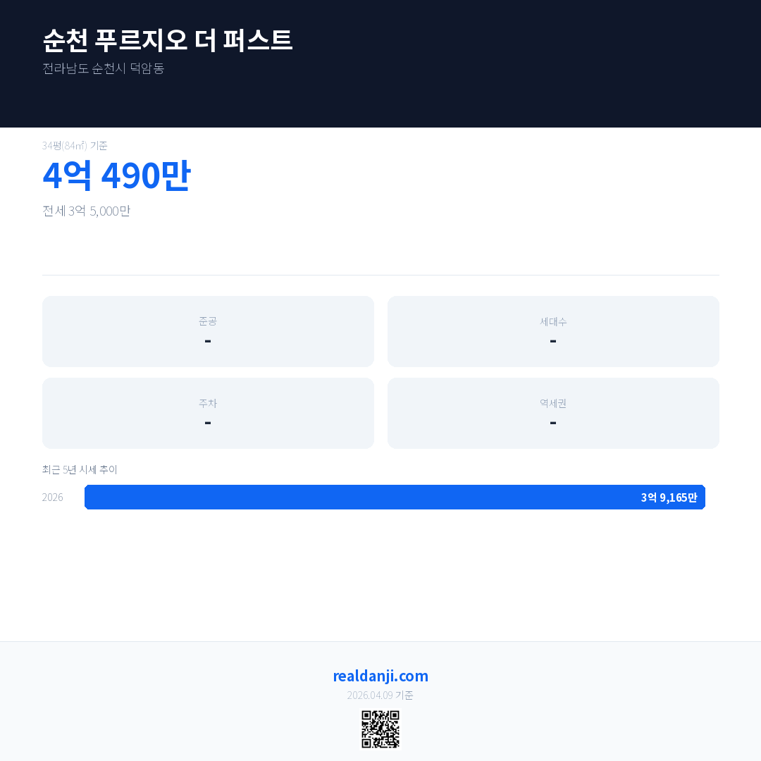순천 푸르지오 더 퍼스트 최근 거래가는 4억 490만입니다. (2026-03)