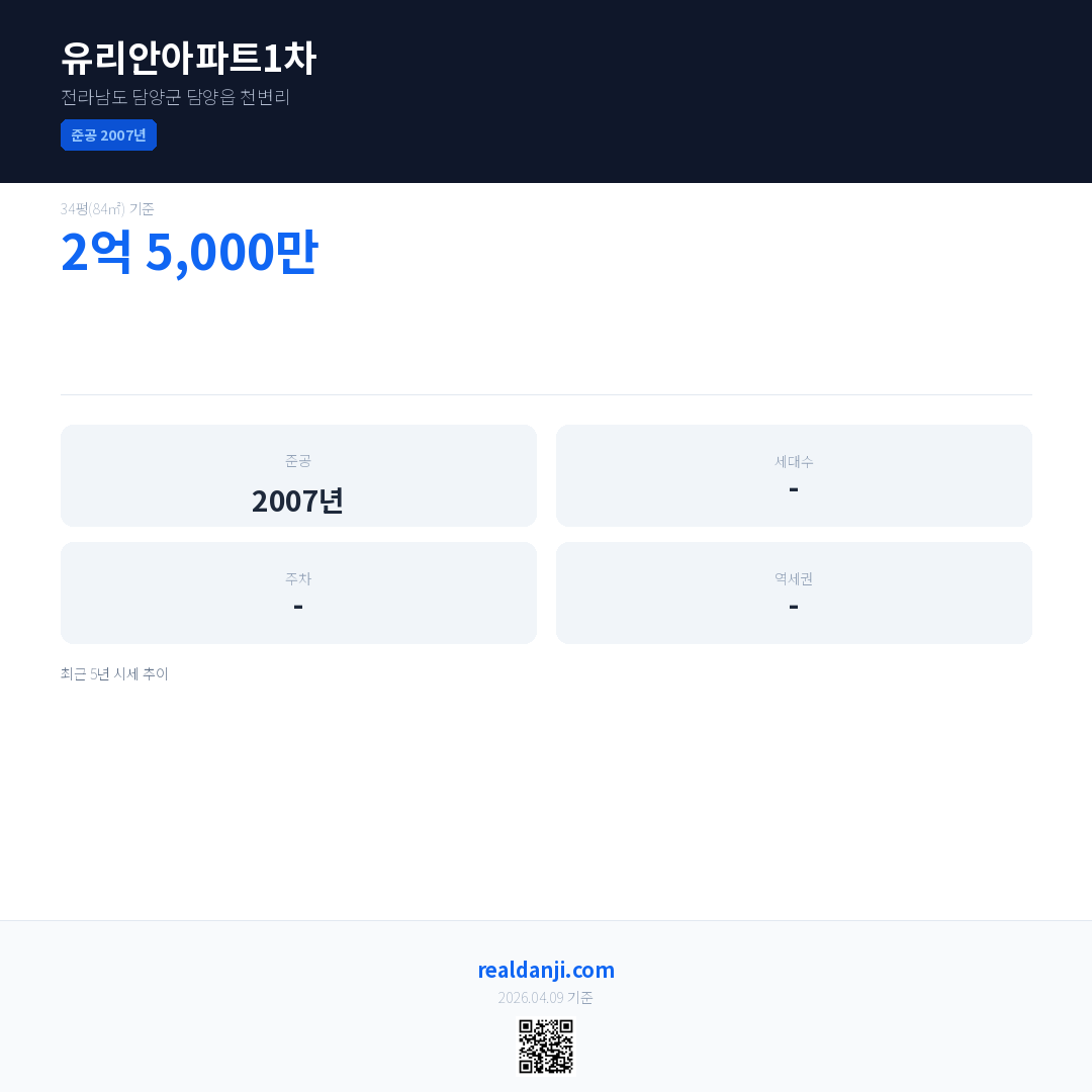 유리안아파트1차 최근 거래가는 2억 5,000만입니다. (2026-03)