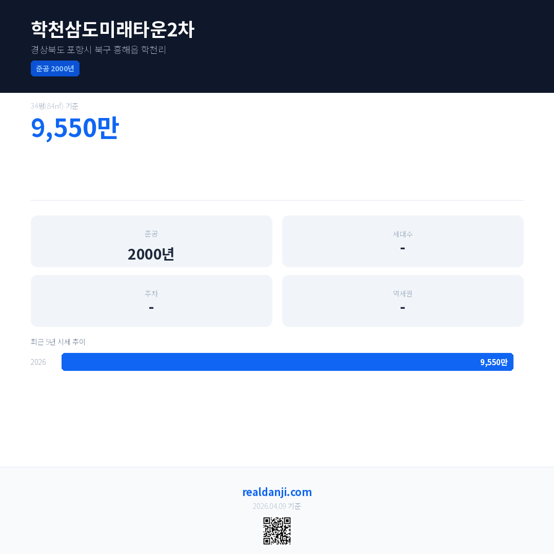 학천삼도미래타운2차 최근 거래가는 9,550만입니다. (2026-03)