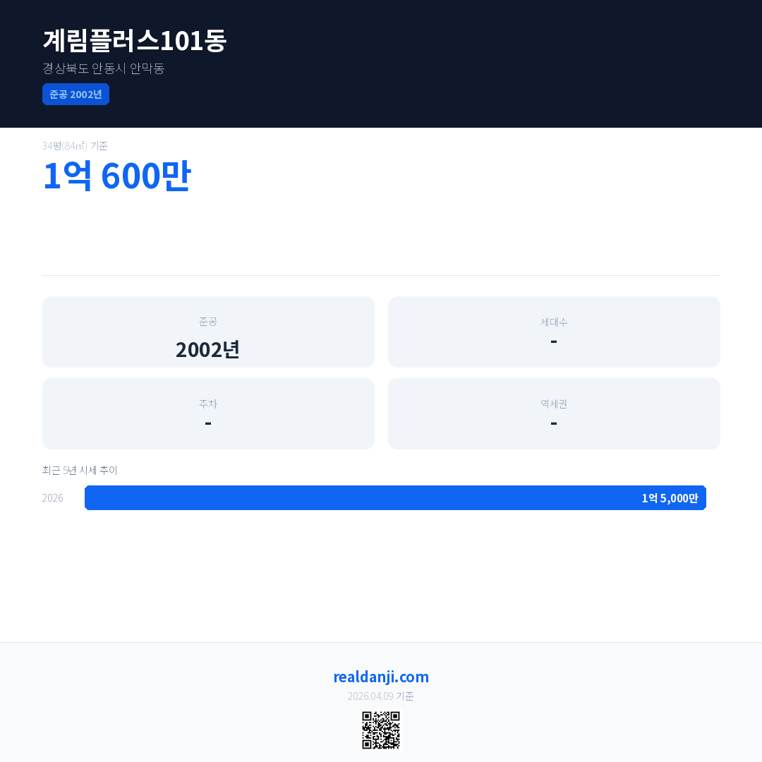 계림플러스101동 최근 거래가는 1억 5,000만입니다. (2026-03)