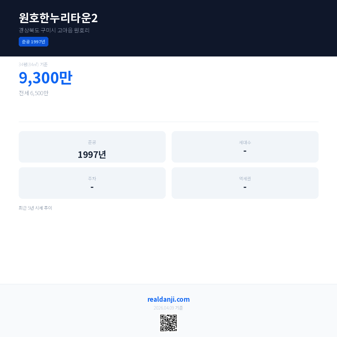 원호한누리타운2 최근 거래가는 9,300만입니다. (2026-03)