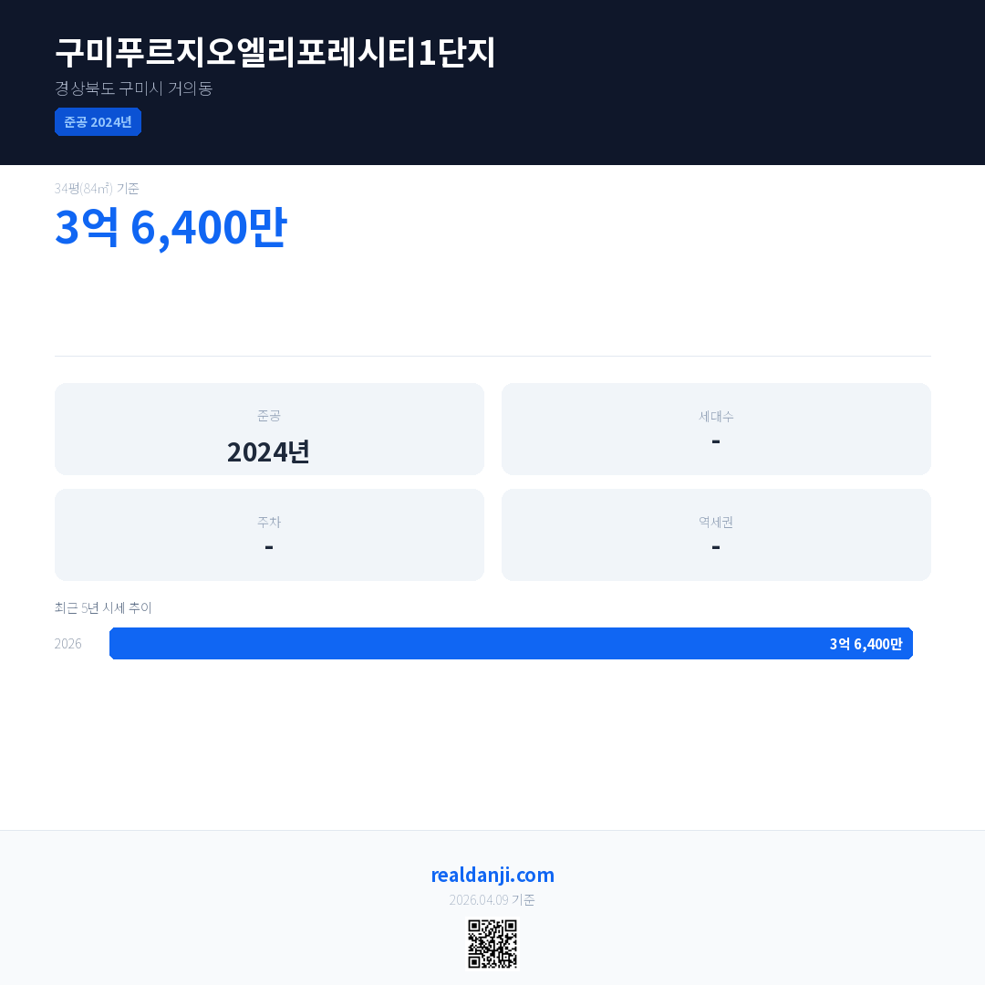 구미푸르지오엘리포레시티1단지은(는) 2024년에 준공되었으며, 현재 2년차입니다.