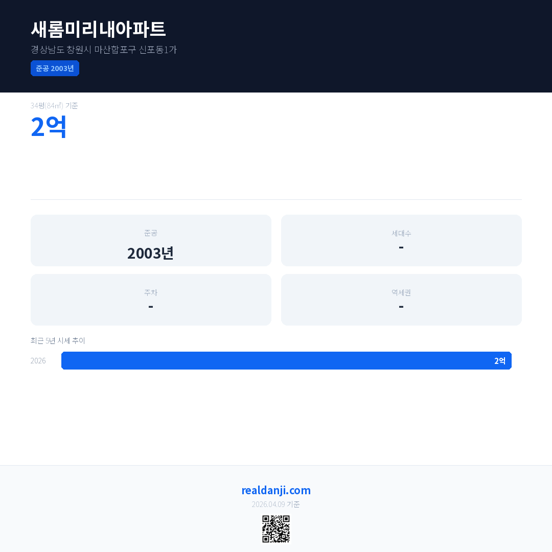 새롬미리내아파트 최근 거래가는 2억입니다. (2026-03)