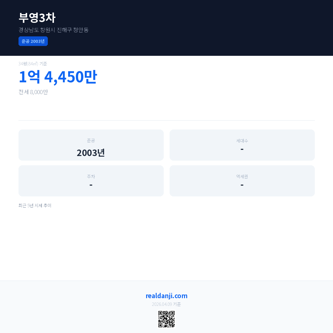 부영3차 최근 거래가는 1억 4,450만입니다. (2026-03)