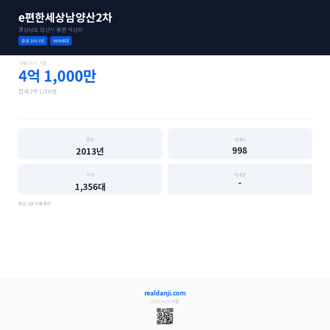 e편한세상남양산2차 최근 거래가는 4억 1,000만입니다. (2026-03)
