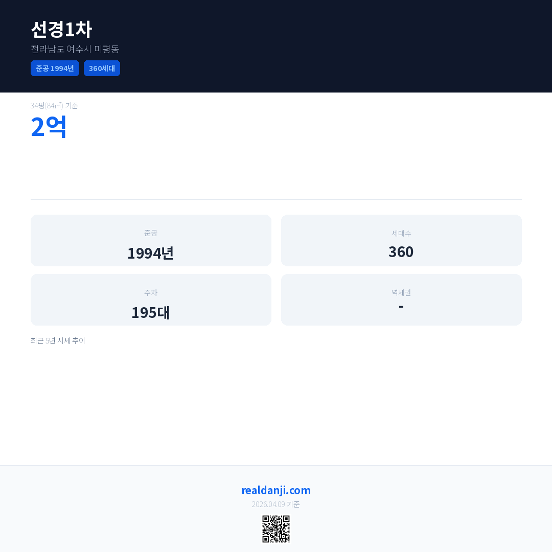 선경1차은(는) 1994년에 준공되었으며, 현재 32년차입니다. 총 360세대 규모입니다.
