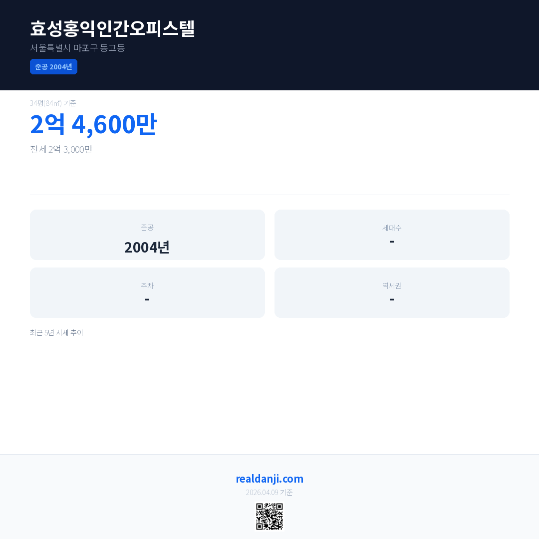 효성홍익인간오피스텔 최근 거래가는 2억 4,600만입니다.