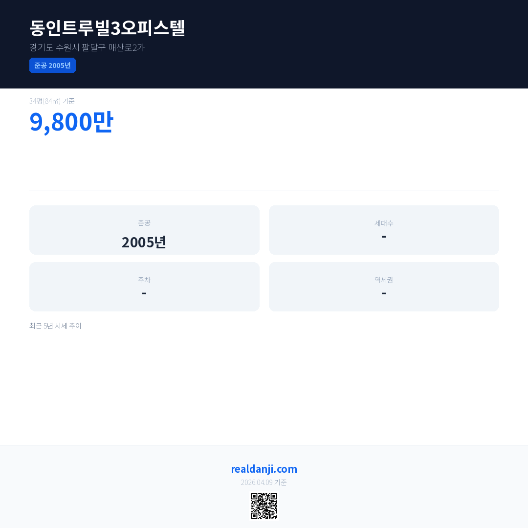 동인트루빌3오피스텔 최근 거래가는 9,800만입니다.