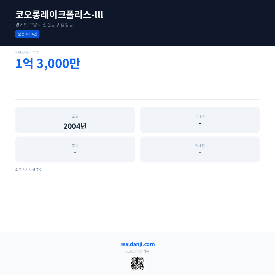 코오롱레이크폴리스-lll 최근 거래가는 1억 3,000만입니다.